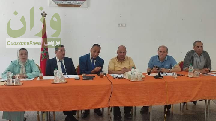 عقد المجلس الجماعي لوزان الجلسة الأولى من الدورة العادية لشهر ماي 2023 صباح اليوم 05-05-2023 بالقاعة الكبرى بمقر الجماعة برئاسة محمد الهلاوي، رئيس جماعة وزان، وبحضور عضوات وأعضاء المجلس الجماعي، وباشا المدينة ومدير المصالح وأطر وموظفي الجماعة، لدراسة النقط المدرجة بجدول الأعمال (رفقته نسخة من جدول الأعمال).